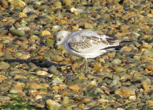 Sunny with a light northerly wind. Three Gannets flew west (possibly the same ones flew east) and parties of 30 and eight Common Scoters flew west. Waders included a Common Sandpiper on the Marsh Pool, a Dunlin and 54 Turnstones on the beach. Two Mediterranean Gulls flew east over the area but, more unexpected, was juvenile Kittiwake which flew east close inshore. One Swift and a juvenile Swallow flew west and a Lesser Whitethroat was near the scout hut.